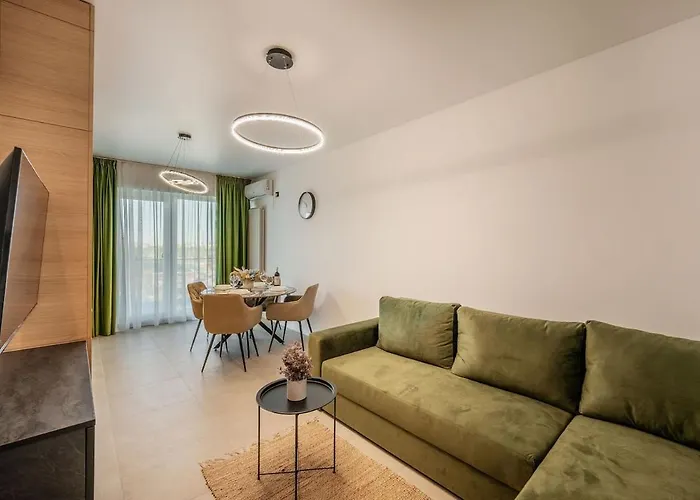 Offering a private swimming pool, Green Serenity Ap In Odyssey Pools Spa N Parking Navodari apartment is situated a 25-minute walk from the Mackerel Mamaia Nord Park. Wi-Fi is available for guests' business or leisure needs.